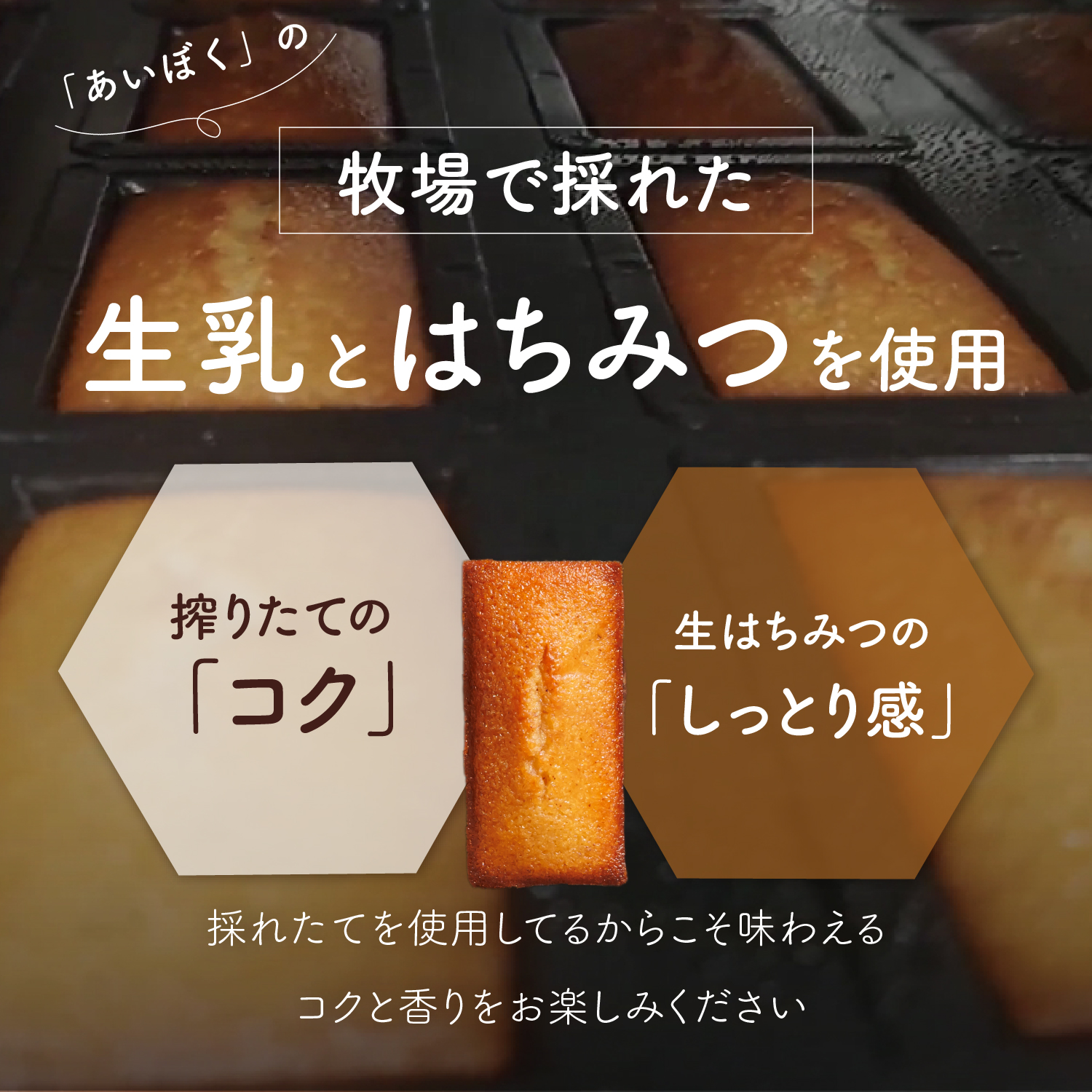 愛知牧場で採れたはちみつをたっぷり使ったハニーフィナンシェは、外はサクサク、中はしっとりとした食感が魅力です。おススメは、トースターで2分焼いて取り出してさらに2分待つと、焼きたてのような外カリ中フワッと美味しく食べられます。優しい甘さと芳醇な香りが広がり、贅沢なひとときを演出します。お茶やコーヒーとの相性も抜群で、手土産にもおすすめの焼き菓子です。ぜひご堪能ください!★ハニーフィナンシェにはハチミツが含まれていますので、